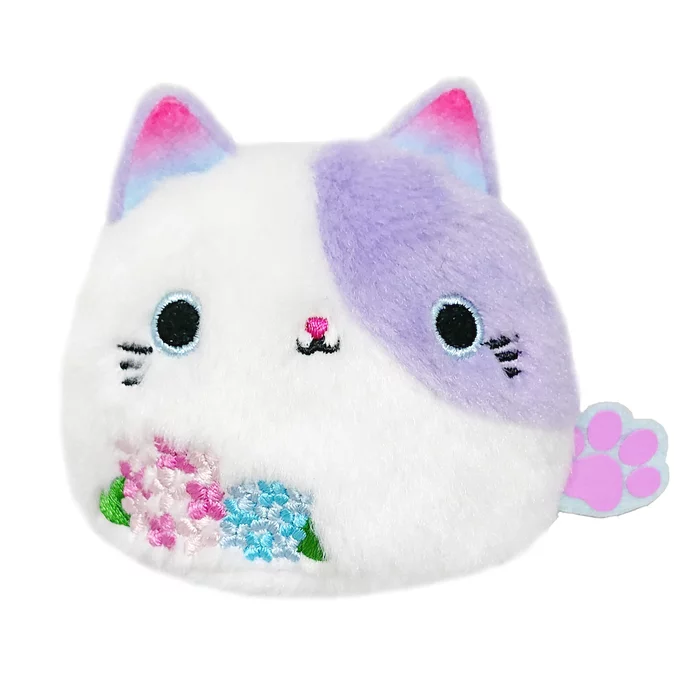 The adorably round-as-dango kitteh Neko-dango is back with a hydrangea design. This Neko-dango has white and purple fur with ombre ears that match the embroidered hydrangea blossoms on the front. Also features a pink paw-print-shaped tag that coordinates well with the floral design. Measures 3″ x 2.4″ x 2.8″. Add it to your collection!