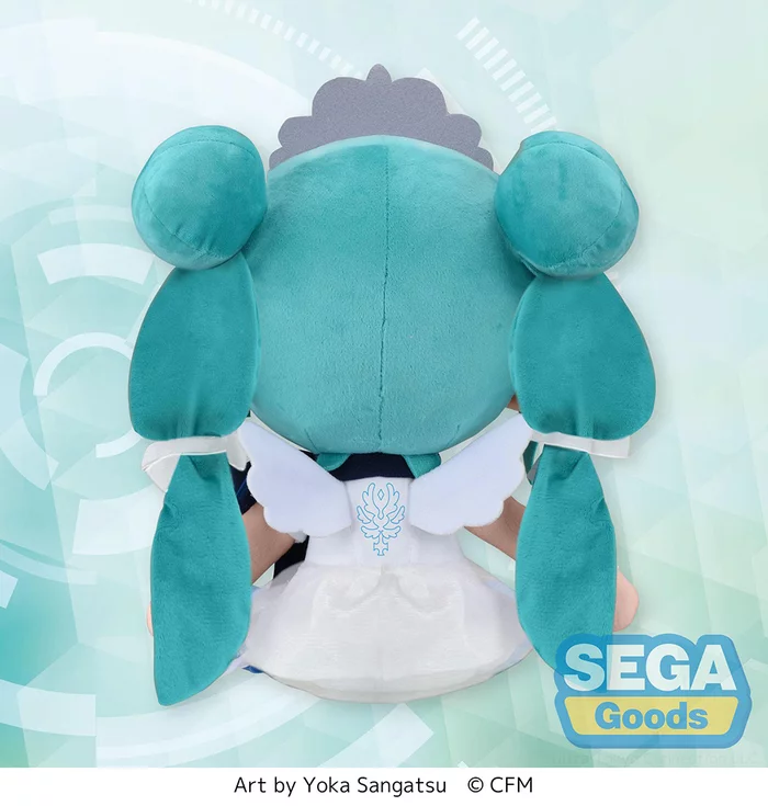 SEGA’s Preciality SP Plush series is celebrating the 15th anniversary of Vocaloid diva Hatsune Miku with this special super soft plushie! Measuring 4.7″ tall in a sitting pose, Miku-chan looks adorable in her 15th anniversary outfit created by Yuichi Murakami, which features a white dress with white wings, bows in her hair, and a crown on her head, and she features a heartwarming embroidered smiling expression with blushed cheeks. And, of course, she’s also adorned with the series’ signature navy blue ribbon. Enjoy her cute charm as part of your collection!